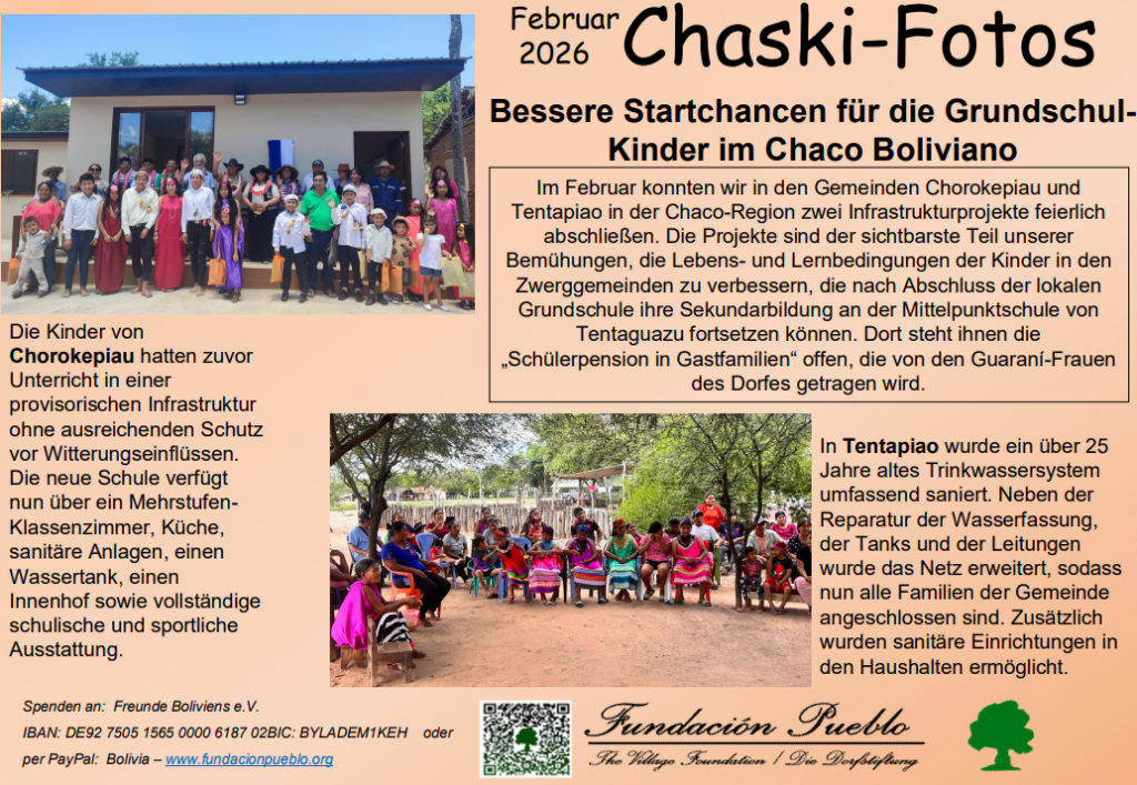Darüber hinaus fördern wir die Arbeit des Vereins Freunde Boliviens e. V., der sich für soziale, kulturelle und völkerverständigende Projekte in Bolivien einsetzt. Die Unterstützung fließt in nachhaltige Initiativen, die Bildung, soziale Teilhabe und bessere Lebensbedingungen ermöglichen.